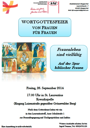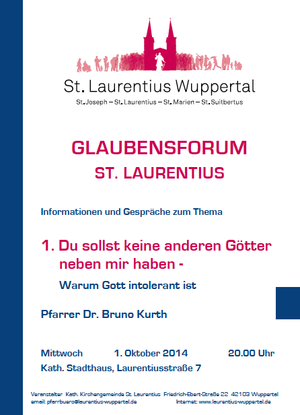 Die nächste Kirchenführung der besonderen Art (mystagogische Kirchenführung) findet Donnerstag, dem 25. September 2014 um 19.00 Uhr in St. Laurentius (am Laurentiusplatz in Wuppertal-Elberfeld) statt. Bereits am Dienstag, dem 23. September 2014 gibt es eine Fürhung durch die Antoniuskirche in Wuppertal-Barmen (Unterdörnen 137/Nähe Alter Markt).