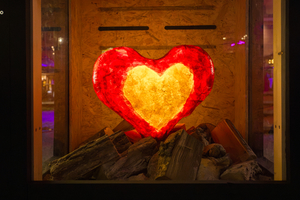 Das brennende Herz der Liebe Gottes steht im Mittelpunkt der Graffiti-Krippe 2025. (Foto: Christoph Schönbach)