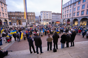 Zum vierten Jahrestag des russischen Überfalls auf die Ukraine hat die Solidargemeinschaft Wuppertal zusammen mit der Stadt Wuppertal am Montag, dem 24. Februar 2026, zu einer Mahnwache für die Ukraine auf den Rathausplatz in Wuppertal-Barmen (Johannes-Rau-Platz) eingeladen.
